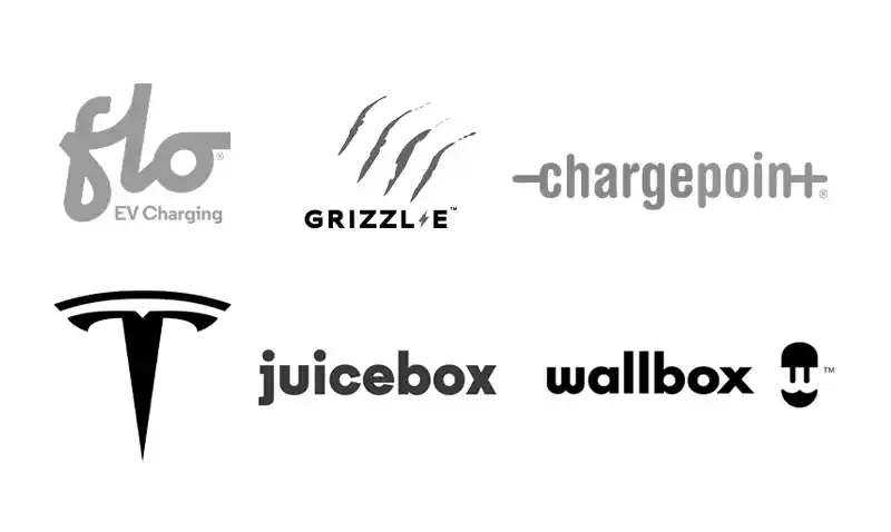 FLO Home (G5 / X5), Grizzl-E, ChargePoint Home Flex, JuiceBox (Enel X), Wallbox (Pulsar Plus), Emporia Level 2 Charger, Siemens VersiCharge, Blink HQ, Tesla Wall Connector.